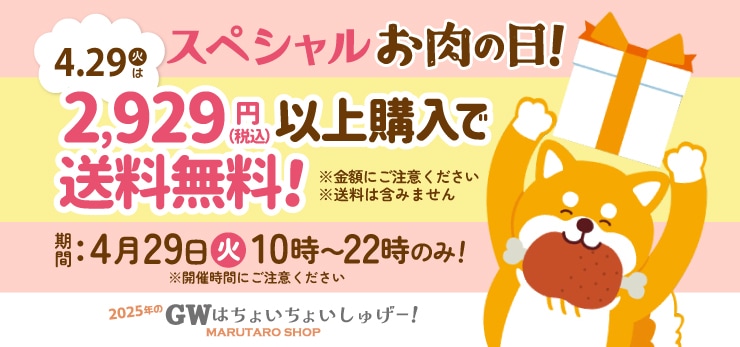 「スペシャルお肉の日」を開催!なんと2,929円(税込)以上のお迎えで送料無料になりますYO!さらに3,300円(税込)以上のお迎えだと、しゅてきなおまけもプレゼント☆